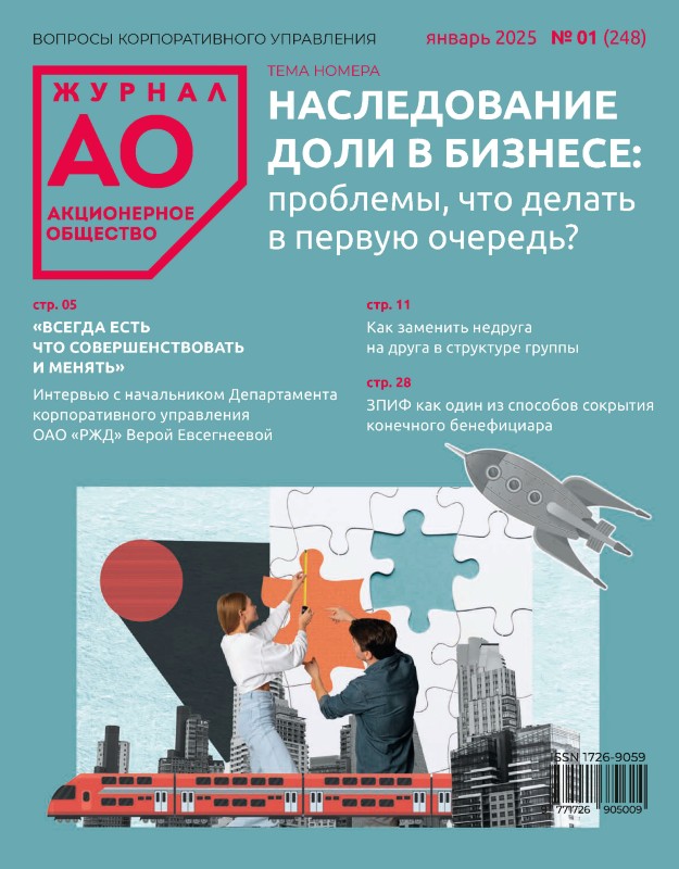 Журнал «Акционерное общество: вопросы корпоративного управления» — это: новости корпоративного законодательства; аналитические статьи по корпоративному праву и управлению; интервью и комментарии ведущих специалистов; обзоры лучших практик корпоративного управления; практические пособия и образцы документов; персональные консультации для читателей от ведущих экспертов; видеолекции и вебинары.